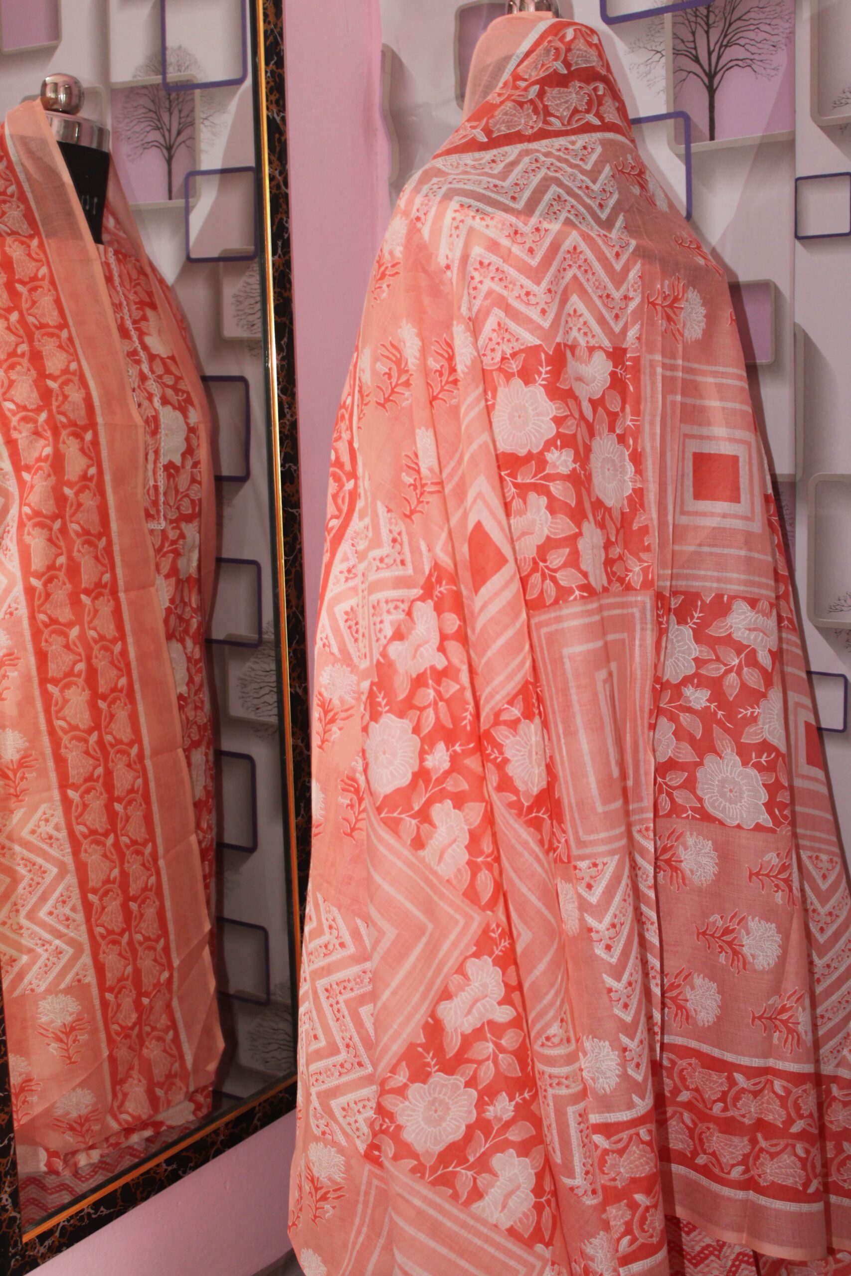 Be the first to review “Aayat – Coral Peach Floral Cotton Suit Set”